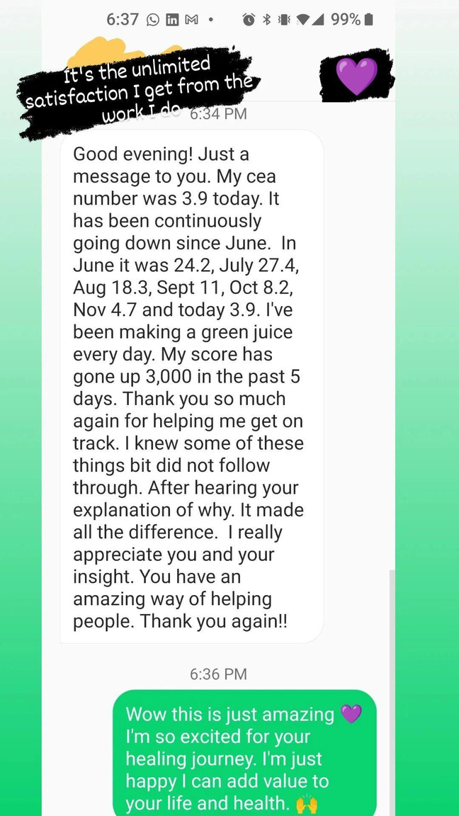 She also gave me direction on some lifestyle changes including a slight change in what I was eating, as well as maintaining consistent exercise.