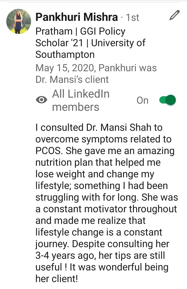 I have learned a lot during my journey with her. I highly recommend Dr. Mansi's services for gut health and autoimmune disease to anyone struggling with western medicine.